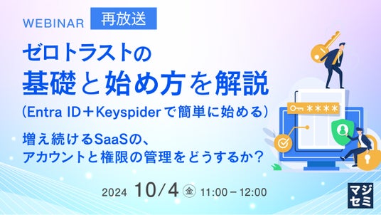 マジセミ株式会社は、大変好評をいただいた「【再放送】ゼロトラストの基礎と始め方を解説(EntraID+Keyspiderで簡単に始める)」というテーマのウェビナーを再放送します。