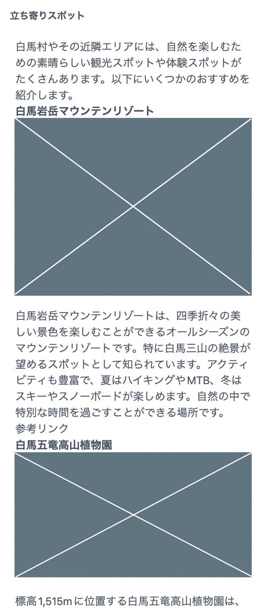 - 高度なパーソナライゼーション:ユーザーの興味や好み、過去の旅行履歴を詳細に分析し、個々の「旅行スタイル」を理解します。これにより、大手旅行サイトでは見つけられないような、ユーザーだけの特別なスポットや体験を提案します。また、同行者や予算、季節などの要素も総合的に考慮し、状況に応じた最適な提案を行います。