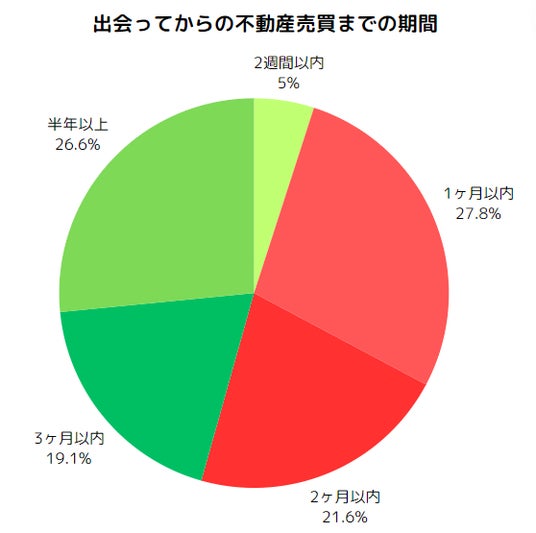 調査結果は、多くの消費者が比較的短期間で不動産取引を決定している現状を浮き彫りにしました。出会いから1ヶ月以内で契約に至るケースが最も多く、さらに2ヶ月以内に取引を完了する消費者が半数以上に上ります。この結果から、消費者が売買意欲の高いタイミングで迅速に決断を下していることが伺えます。しかし、調査員の視点から見ると、この短期間の意思決定は物件の比較や営業担当者の能力・人間性の評価に十分な時間が割かれていない可能性があり、その後の取引満足度に影響を及ぼしている懸念が考えられます。