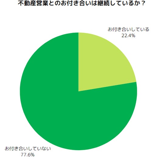 調査の結果、取引後も不動産営業との関係を継続している人は22.4%にとどまり、多くの消費者が取引終了後に営業担当者との接触を絶っていることが分かりました。ここで注目すべきは、取引後のフォローが不十分であることが、不動産営業との継続的な関係構築を阻害している可能性がある点です。調査員の視点では、顧客関係の維持が不動産営業にとって重要な要素であり、取引後も継続的に顧客と連絡を取り合うことが、次回以降の取引に繋がる可能性を高めると考えられます。