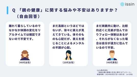 ・息子・娘世代にとって、遠方に住む「親の健康」に関する悩みや不安は様々。(一部回答を抜粋)