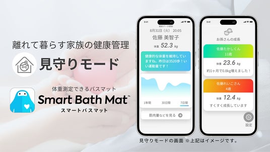 調査結果に関連し、9月16日(月)の「敬老の日」に「スマートバスマット」アプリの新機能として、遠方に住む高齢者の健康維持に使用できる「見守りモード」を追加することを発表します。