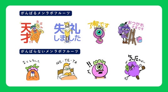 初の公式LINEスタンプ 毎日使える「がんばるメンラボフルーツ」と「がんばらないメンラボフルーツ」の2つの公式LINEスタンプを同時リリース!