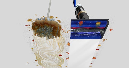 Dyson WashG1(TM)は、面倒な水拭きと掃除機がけが同時にできる、ダイソン初の水拭きクリーナーです。吸水性の高いマイクロファイバー素材のウェットローラーと、一貫してきれいな水を給水するダイソン独自の技術の組み合わせにより、固形物と水分がまざった汚れを一気に取り除く*¹製品を実現しました。素足での生活による皮脂汚れやべたつきなどに加えて、お子様の食べこぼし、ペットのごはんやトイレ回りの汚れなども一台で解決できます。汚れの種類に合わせて給水量が選択できるため、少量の食べこぼしから、べたつきのある液体状の汚れや乾いてしまった汚れまで、あらゆるものに対応します。