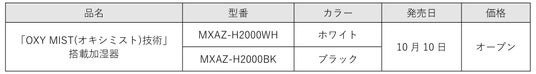 「OXY MIST(オキシミスト)技術」搭載 加湿器「MXAZ-H2000」