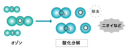 本製品は、オゾネオ技術*1 の清らかなオゾン風を出し、オゾンの持つ酸化力でニオイの元などを分解します。また、電響社が開発した「OXY MIST(オキシミスト)技術」を搭載しています。