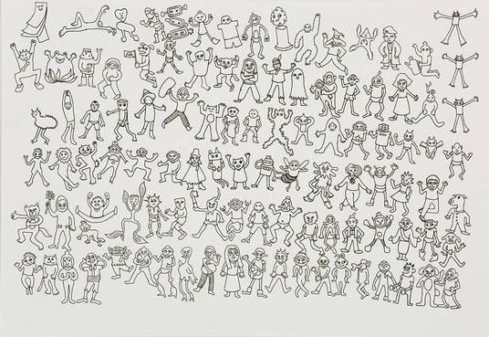 1977年生まれ。彼が真っ白いキャンバスに表現するのは、0.03から0.7mmまでのペンで描く唯一無二の個性豊かなキャラクター達。それぞれ表情や格好が違い、画面の中で踊っているように表現される。