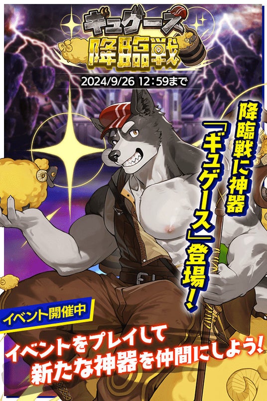 イベント期間中、イベントクエストに挑戦すると新SR神器「ギュゲース」が報酬で入手可能!
