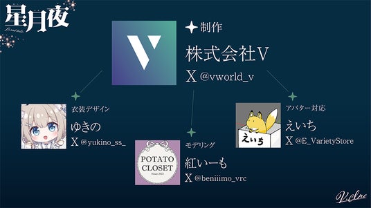 株式会社V(本社:東京都品川区、代表取締役兼CEO:藤原光汰、以下 V)は、2024年9月12日17時より弊社Boothショップ「V WORLD」よりオリジナル衣装「星月夜-Starry Night-」を発売開始したことをお知らせいたします。
