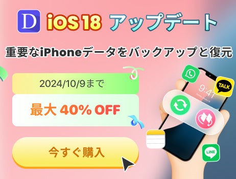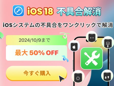 世界中で200+の権威メディアが推奨されたソフトウェア開発会社iMyFone は9月12日(木)より、iOS 18アップデートに必要な人気製品を最安値で購入する特別セールを開催しました。キャンペーン期間中、アップデートソフトとダウングレードソフト、データ転送・復元ソフト、不具合解消ソフトのための40%~50%割引を提供します。
