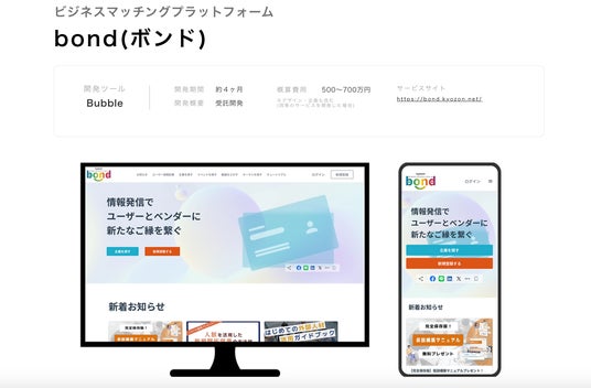 Bubble開発事例2:ビジネスマッチングプラットフォーム「bond(ボンド)」