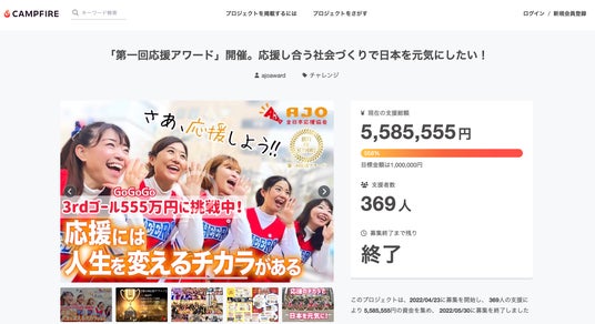支援総額: 5,585,555円 支援者数:369人