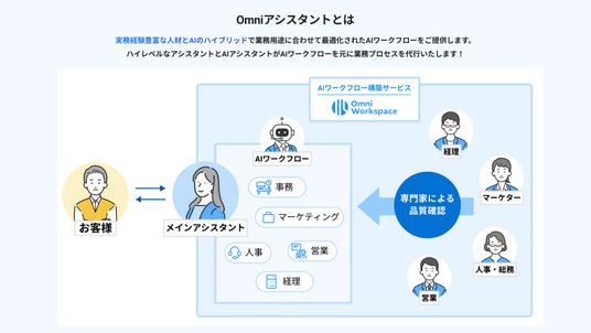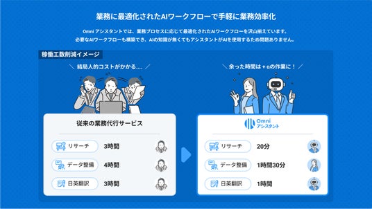 「Omni アシスタント」は、企業が業務プロセスの改善を図る中で直面する「AIを使いこなすための専門知識不足」という課題を解決するサービスです。
