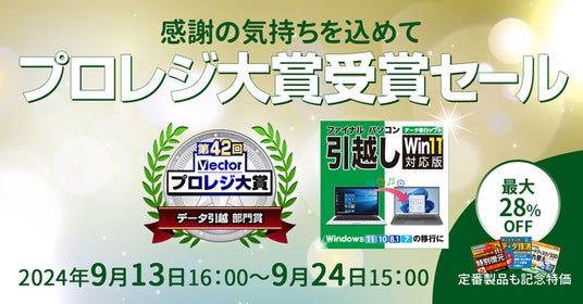 「企業データとAIの利活用カンパニー」AOSデータ株式会社(本社:東京都港区、代表取締役社長:吉田 宣也)が提供するWindows 11対応の販売本数No.1(※1)パソコンデータ移行ソフト「ファイナルパソコン引越しWin11対応版 ダウンロード版」が、第42回 Vector プロレジ大賞 データ引越し 部門賞を受賞いたしました。
