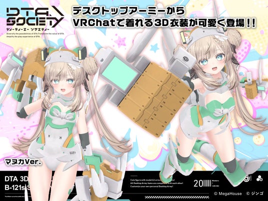 株式会社V(本社:東京都品川区、代表取締役兼CEO:藤原光汰、以下 V)は、株式会社デスケル(本社:神奈川県相模原市、代表取締役社長:小橋 隆司、以下 デスケル)と共同で、VRChatなどのソーシャルVR/メタバースプラットフォームユーザー向けに、人気可動フィギュアブランド『デスクトップアーミー』(以下DTA)キャラクター「シルフィーIIアグレッサー」の3Dアバター衣装の制作を発表いたします。