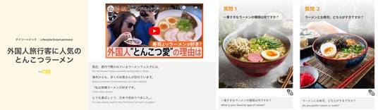 こうした動画を使った日本語学習の普及を踏まえ、より多くの方に楽しく日本語を学んでいただけるよう、動画を使った新教材「デイリートピック(Daily Topics)」をリリースしました。