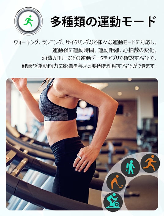 運動を積極的に行うユーザー向けに、ウォーキング、ランニング、サイクリング、登山水泳の5つの運動モードを搭載しています。運動した距離、ペース、時間、心拍数などのデータをリアルタイムで記録し、効果的なトレーニングをサポートします。これにより、日々のフィットネス目標を達成しやすくなり、健康的なライフスタイルを継続することが可能です。