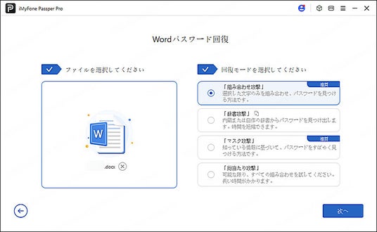 ★ 組み合わせ攻撃、辞書攻撃、類推攻撃、総当たり攻撃という4つの回復モードを提供