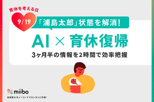 株式会社miibo(本社:東京都港区、代表取締役:功刀雅士)は、9月19日の「育休を考える日」に向けて、生成AI技術を活用した育児休業支援の取り組みをまとめたレポート「育休明けの「浦島太郎」不安をAIで解消したら心がスッと軽くなった話」「3ヶ月半の育休から、わずか2時間で職場復帰できた秘訣」をご紹介いたします。このレポートは実際に3ヶ月半育休を取得した社員が、わずか2時間で社内の最新情報を把握し、いわゆる「浦島太郎」状態を回避した円滑な復帰を実現した体験談です。