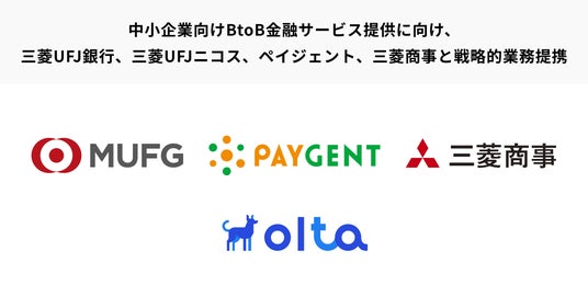 OLTA、中小企業向けBtoB金融サービス提供に向け、三菱商事、三菱UFJ銀行、三菱UFJニコス、ペイジェントと戦略的業務提携