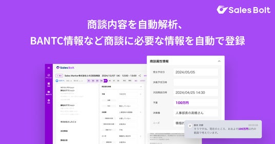 株式会社Sales Marker、商談成約率を最大化する「Sales Bolt」を提供開始
