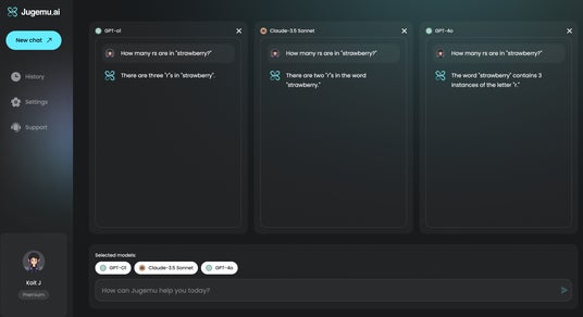 AI SaaSサービス「Jugemu.app」は、OpenAIの最新モデル「o1」を新たにサポートし、提供を開始した。Jugemu.appでは、ChatGPT、Claude、Geminiなど17の最新LLMモデルを単一サブスクリプションで手頃な価格で利用できる。さらに、最大3つのモデルのアウトプットを一画面で比較することができ、ユーザーは複数のAIモデルを同時に利用し、生成結果を比較することが可能である。