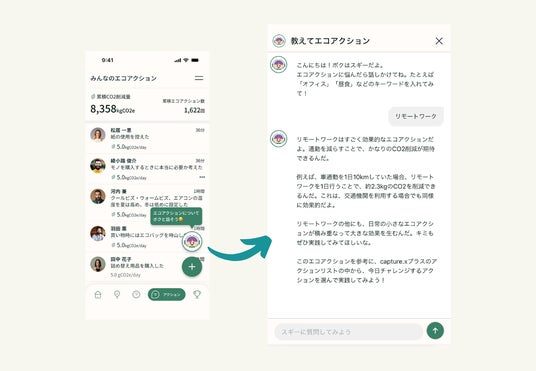 キーワードを入れるだけで、今できるエコアクションを提案してくれる生成AIチャットボット「教えてエコアクション:AI スギー」をリリース。capture.xプラスにて展開