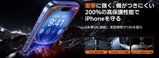 ZENISSは、航空宇宙グレードの高アルミシリコンガラスを使用し、10H硬度を誇る強化ガラスを実現。最新のNa+/K+イオン交換技術を採用し、1200℃での高温硬化プロセスを経て、内部に圧縮層を形成しています。このフィルムは、通常の製品に比べて耐衝撃性が高く、鍵やコインなどによる傷からiPhoneを完全に保護します。また、破片飛散防止加工により、万が一割れた場合でも安全性が確保されます。