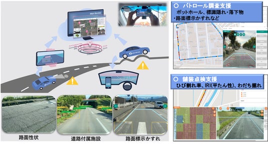 実証実験は2024年8月下旬~2025年2月下旬の期間で行い、スマートフォンを活用した道路点検クラウドシステムGLOCAL-EYEZの区画線点検技術の運用をはじめ、道路全体の点検効率化に向けた新技術開発および適用性検証を進めてまいります。