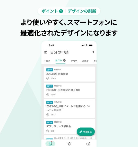 新しいアプリでは、デザインの刷新や新たな機能の実装により申請や承認がさらにスムーズになります。