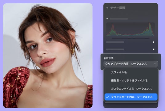 テザー撮影時に、パソコンのクリップボードに保存された内容に通し番号をつけて、写真を保存できるようになりました。学校アルバムの個人写真の撮影など、複数名の個人写真を撮影する際に便利な機能です。
