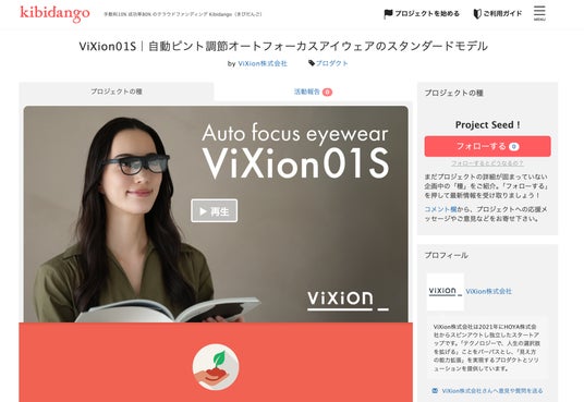 オートフォーカスアイウェア「ViXion01S」は、クラウドファンディングサイト「Kibidango(きびだんご)」と「GREEN FUNDING」での先行予約受付が決定しました。
