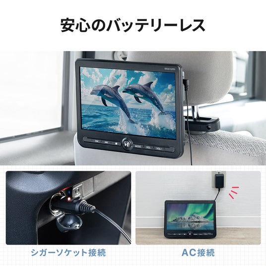 ●ヘッドレストに取り付けできる10.1インチの車載モニター