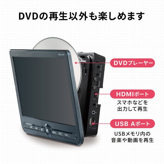 ヘッドレストモニター 後部座席 10.1インチ 車載モニター DVDプレーヤー HDMI入力 3.5mmミニプラグ USBメモリ対応
