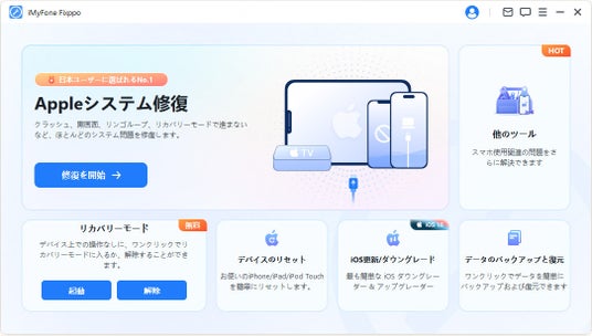 Fixppoは、iOS関連の問題を解消することに力を入れています。このソフトをもって、リンゴループ、再起動繰り返す、リカバリーモードにフリーズなど150+iOS不具合を解決可能できるし、手軽くデバイスのリセットも可能です。さらに、高速かつ安定で最新のOSバージョンも更新できます。このうえ、無料かつワンクリックでリカバリーモードに入る・解除のも対応します。