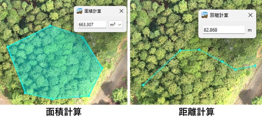 DF BIRDには描画画面も備わっているため、生成した画像をそのままソフトウェア上で確認することができます。また、面積計算・距離計算機能が備わっており、簡易的な測定ツールとしてそのまま使用することも可能です。