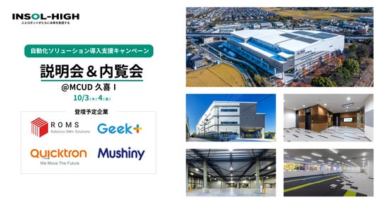 物流の拠点選びから自動化設備導入をトータルでサポートするINSOL-HIGH株式会社(本社:東京都千代田区、代表取締役:磯部宗克、以下「INSOL-HIGH」)とシービーアールイー株式会社(本社:東京都千代田区、代表取締役:辻貴史、以下「CBRE」)は、「MCUD野田I、II、久喜I、II」の検討者向けに自動化ソリューションの導入支援のキャンペーンの説明会&内覧会を開催します。