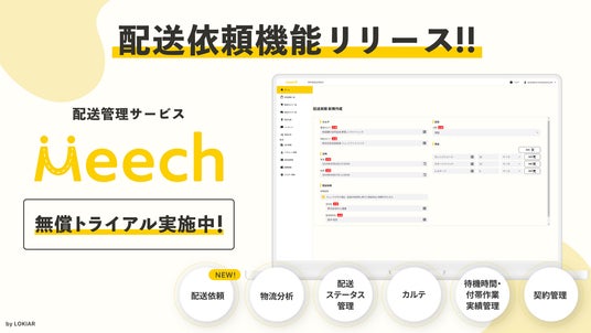 企業間物流に特化した物流支援事業を展開する株式会社LOKIAR(本社:東京都北区、代表取締役:伊藤 健太、以下「LOKIAR」)は、物流管理業務の効率化と法対応によるリスク軽減を図る企業間物流支援サービス『Meech』に、荷主様が出荷時などに運送会社様に実施する、配送条件の共有および車両手配の作業を効率化する 「配送依頼機能」をリリースしました。