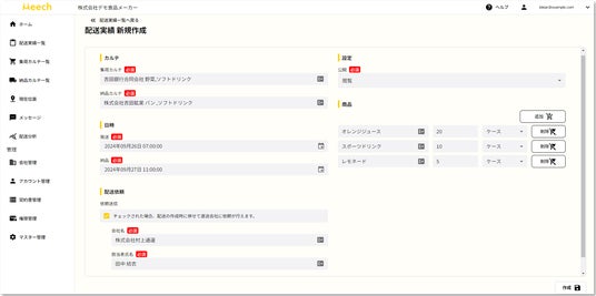 荷主様の物流管理業務を支援する『Meech』に、運送会社様へ配送条件の共有や車両手配を依頼する「配送依頼機能」をリリースしました。