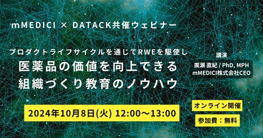 【2024/10/8(火)開催】mMEDICI×DATACK共催ウェビナー「プロダクトライフサイクルを通じてRWEを駆使し、医薬品の価値を向上できる組織づくり・教育のノウハウ」