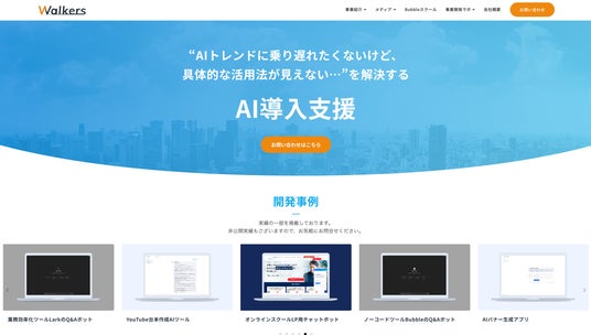 株式会社Walkersはテクノロジーとビジネスの交差点でクライアントの皆様と“共に歩む”成長支援カンパニーです。累計300件以上の開発・制作、200社以上の企業様を支援しています。