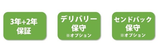 有償でのデリバリー保守(1年/3年/5年)、センドバック保守(延長1年/2年)にも対応。長期間、企業ユースで安心してご使用いただけます。