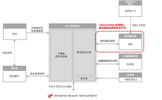 ダイヤモンド・リアルティ・マネジメント株式会社(以下「DREAM」)、みずほリース株式会社(以下「みずほリース」)及びみずほリースの100%子会社であるエムエル・エステート株式会社(以下「MLE」)は、2024年9月18日付で、デジタル証券準備株式会社(以下「DS」)及び同社のシステム子会社であるオーナーシップ株式会社(以下「OS」)が開発したセキュリティー・トークン(以下「ST」)発行・管理システム「OwnerShip」を活用し、匿名組合出資持分をST化した適格機関投資家向け不動産STOファンド(以下「本ファンド」)を組成致しました。