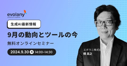 【エボラニ株式会社】2024年9月30日(月)14:00~14:30 生成AI最新情報 9月の動向とツールの今