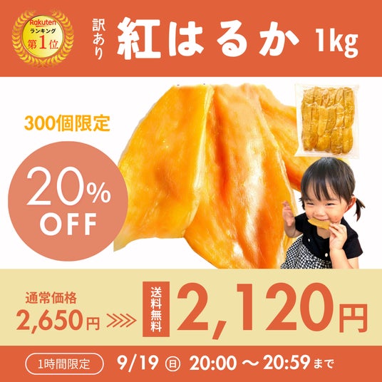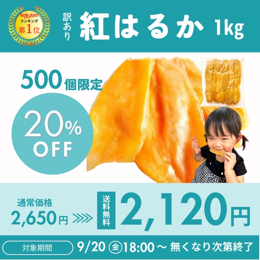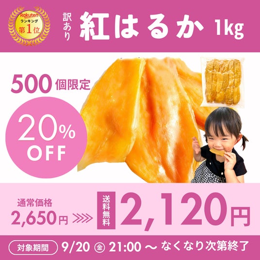 4回開催!『人気No,1訳あり紅はるか干し芋 1kg』 セール情報