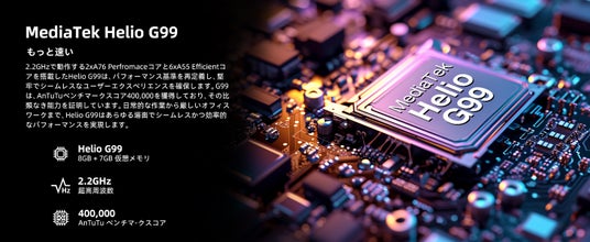 DOOGEE T30 Proアンドロイドタブレットは、先進プロセスの6nm技術を採用したHelio G99プロセッサーを搭載しています。このプロセッサーは、最大2.2GHzのCortex-A76コアを2基、最大2GHzのCortex-A55コアを6基持ち、パワフルな処理能力を提供します。その結果、複雑なコンピューティングタスクやグラフィックスレンダリングを容易に処理し、スムーズなマルチタスクとゲーム体験を実現します。