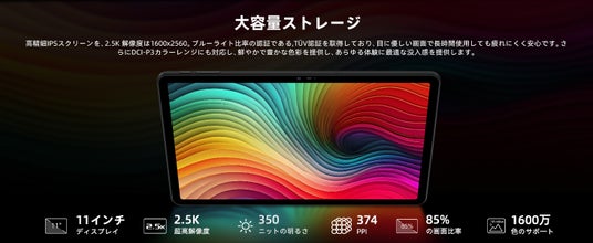 DOOGEE T30 Proは、11インチの2.5K高解像度ディスプレイを搭載しており、美しい視覚体験を提供します。IPS Incellフルラミネーションディスプレイ技術を使用しており、画面は鮮明で色彩豊かで、広い視野角を持っています。また、TUVのブルーライト認証を取得しており、有害なブルーライトを効果的にフィルタリングして、目の疲れや刺激を軽減し、視力の健康を保護します。