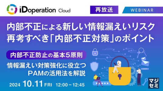 マジセミ株式会社は、大変好評をいただいた『【再放送】内部不正による新しい情報漏えいリスク、再考すべき「内部不正対策」のポイント』というテーマのウェビナーを再放送します。