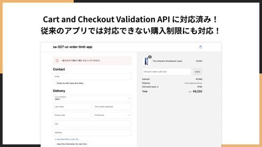 また、「シンプル購入制限|お手軽注文制限」は、Cart and Checkout Validation API を利用しているため、従来のアプリと比べて堅牢な注文制限を実現できます。