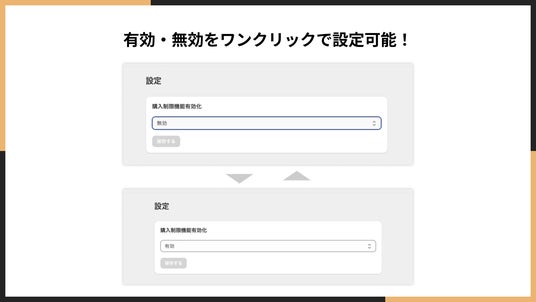 「シンプル購入制限|お手軽注文制限」は、有効・無効をワンクリックで設定できます。